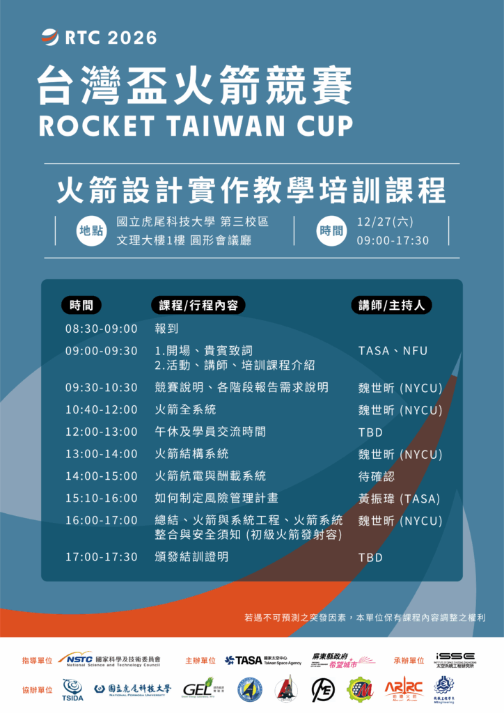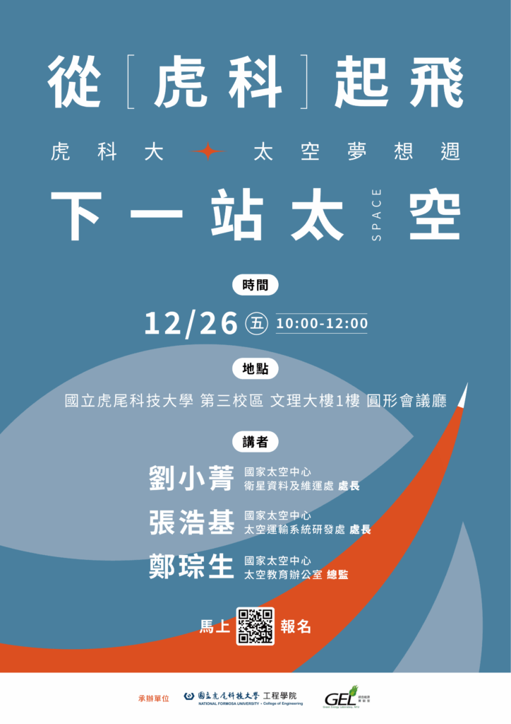 【太空夢想週X台灣盃火箭競賽培訓課程】12/26(五)虎科大太空夢想週活動-從[虎科]起飛-下一站太空,歡迎師生踴躍報名參加-工程學院